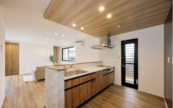 キッチンからリビング、そして洗面室までがスムーズにつながる“回遊動線”設計です。