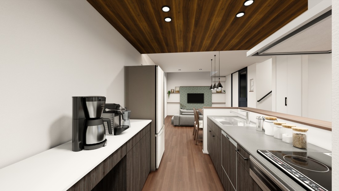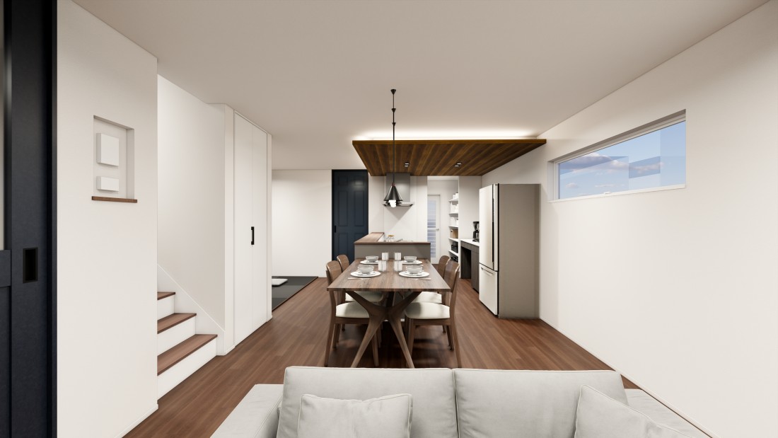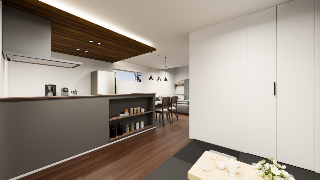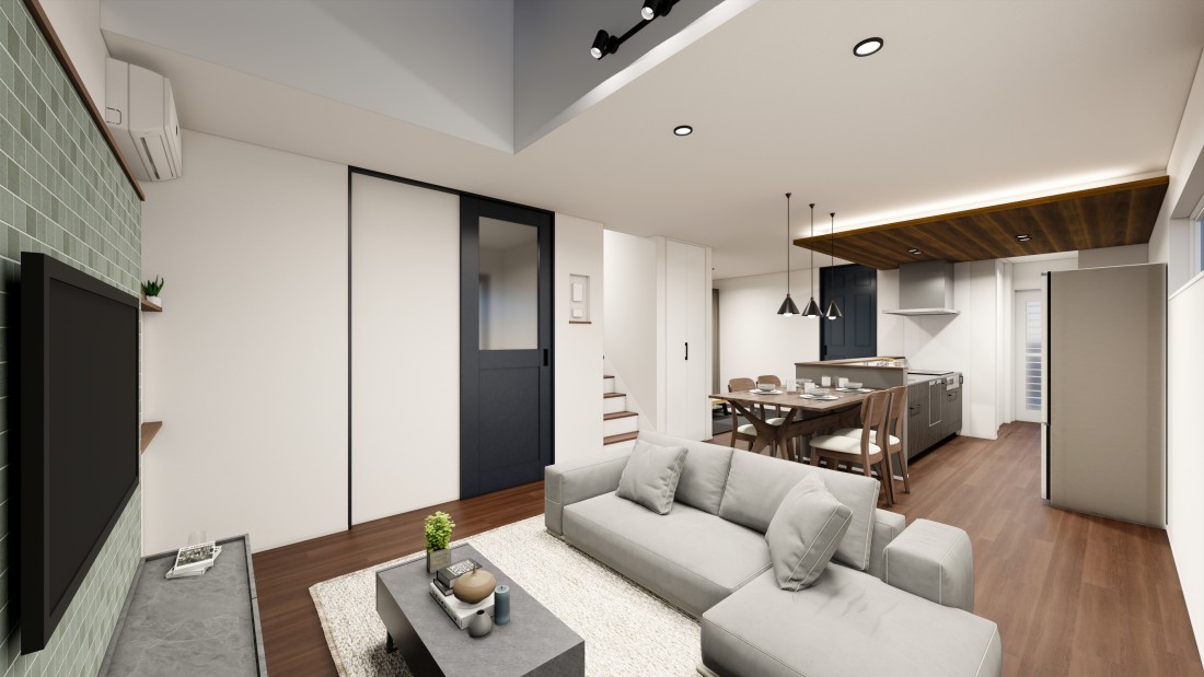 黒とグレージュのコントラストが映える、上質モダンな住まい。ウッディなLDKが心地よい時間を演出するデザイン性と快適性を両立した住まい。