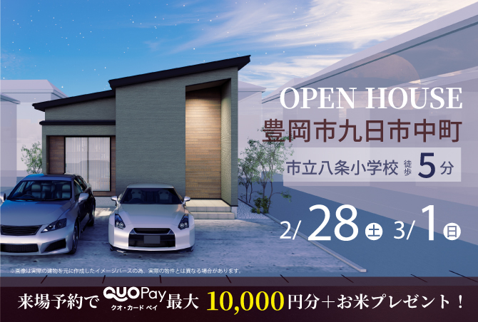 さらに、次回(2回目)ご来場時に銀行の事前審査申込で +5,000円分 のQUOカードPayと、お米(2キロ) をプレゼントいたします。