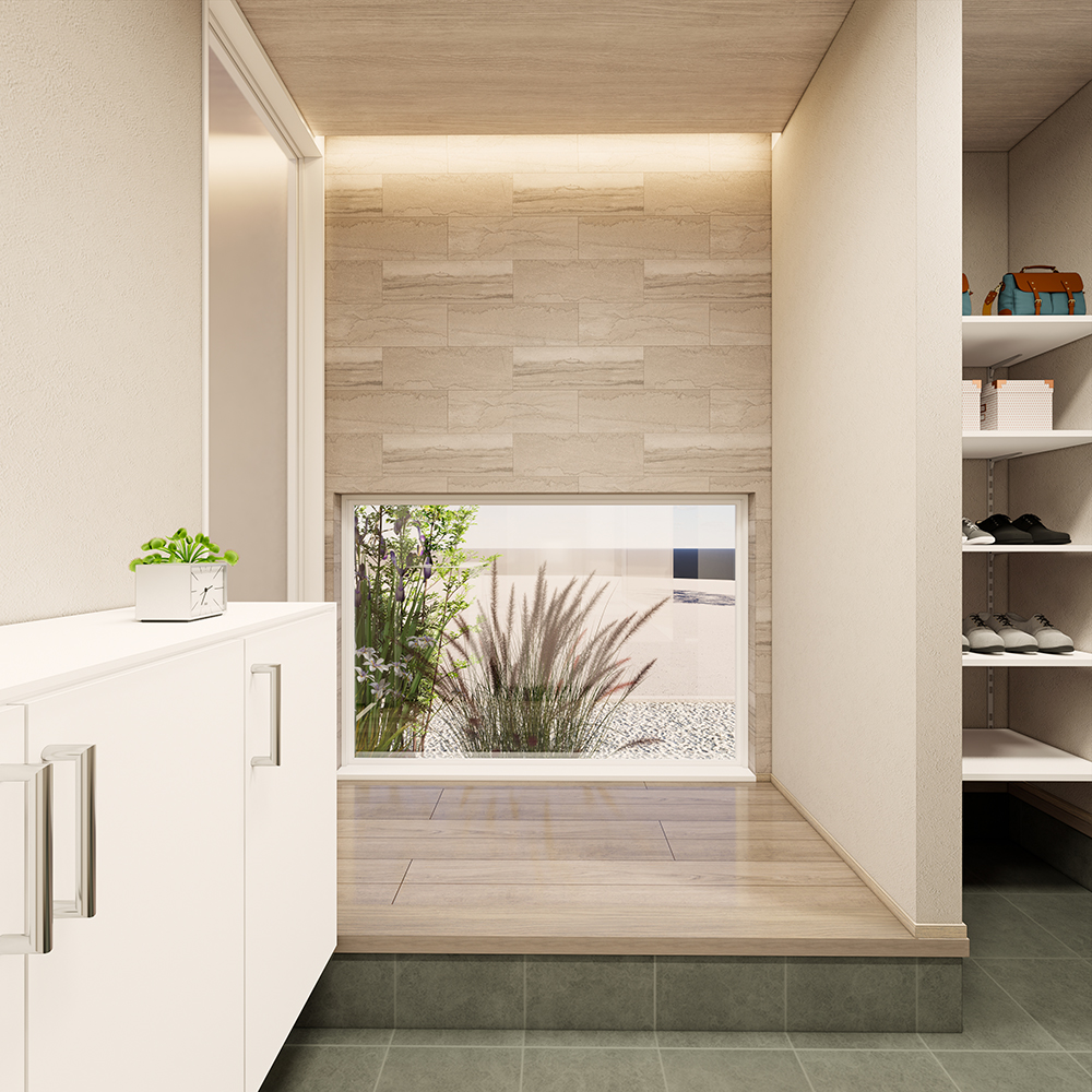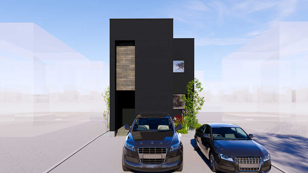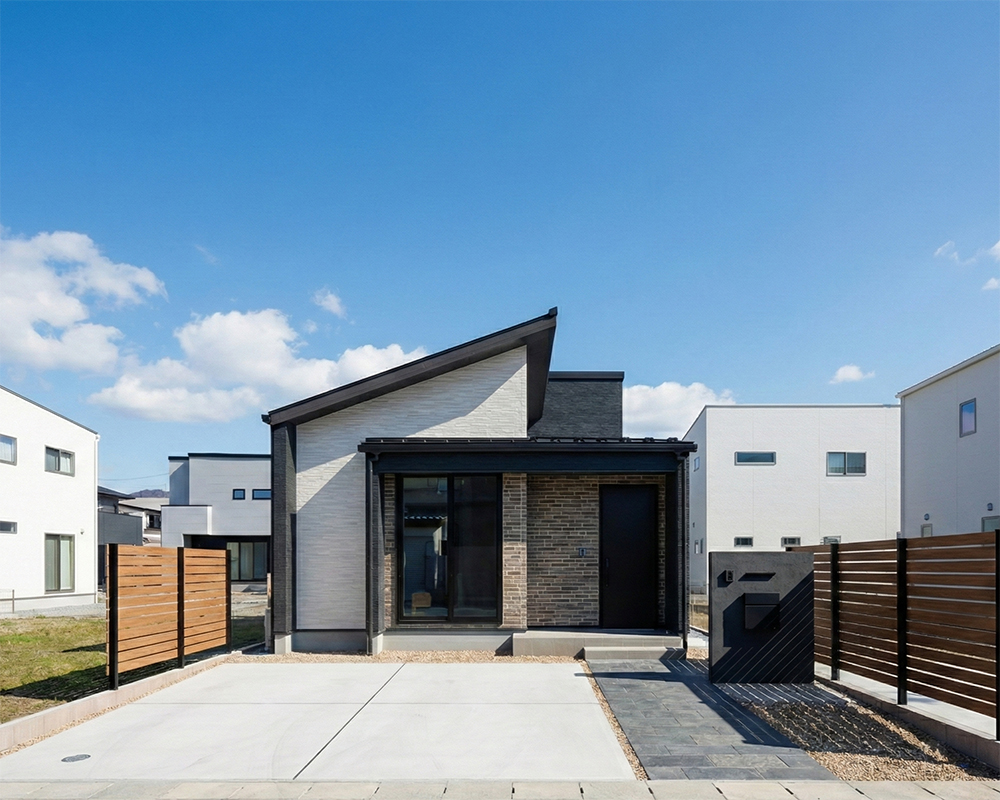 ①【 モノトーン×レンガ調。クールさと温もりが調和する邸宅 】