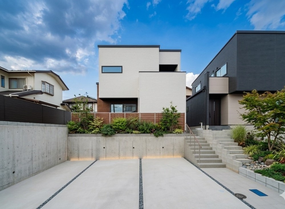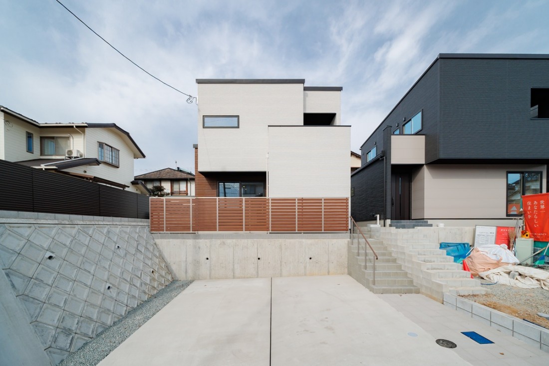 大理石調キッチンが主役!白が映える洗練のLDKと、高台ならではの陽光溢れる開放的な一邸