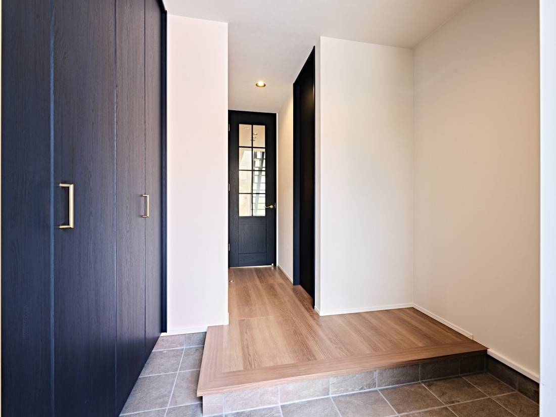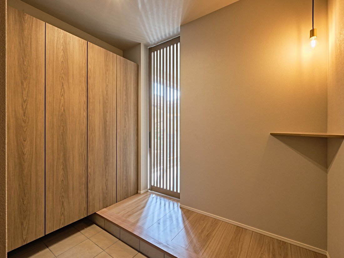 玄関入って左側に、高さのある玄関収納を設けました。