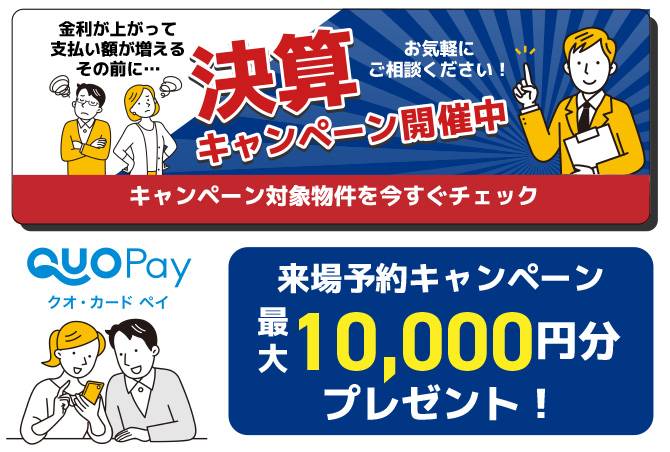 さらに、次回(2回目)ご来場時に銀行の事前審査申込で +5,000円分 のQUOカードPayをプレゼントいたします。
