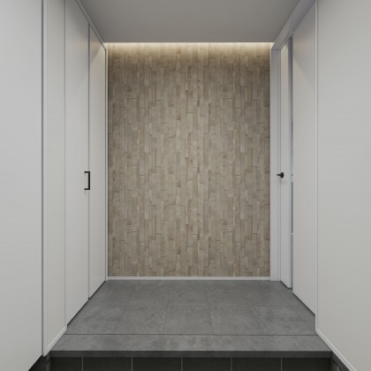 玄関を入って左側に、高さのある収納を設けました。扉付きなので、玄関まわりをスッキリ保てます。※パースはイメージです。