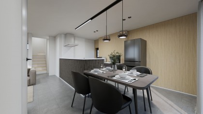 ダイニングとリビングをゆったり分けたLDKで、食事とくつろぎの時間を心地よく切り替えられます。※パースはイメージです。