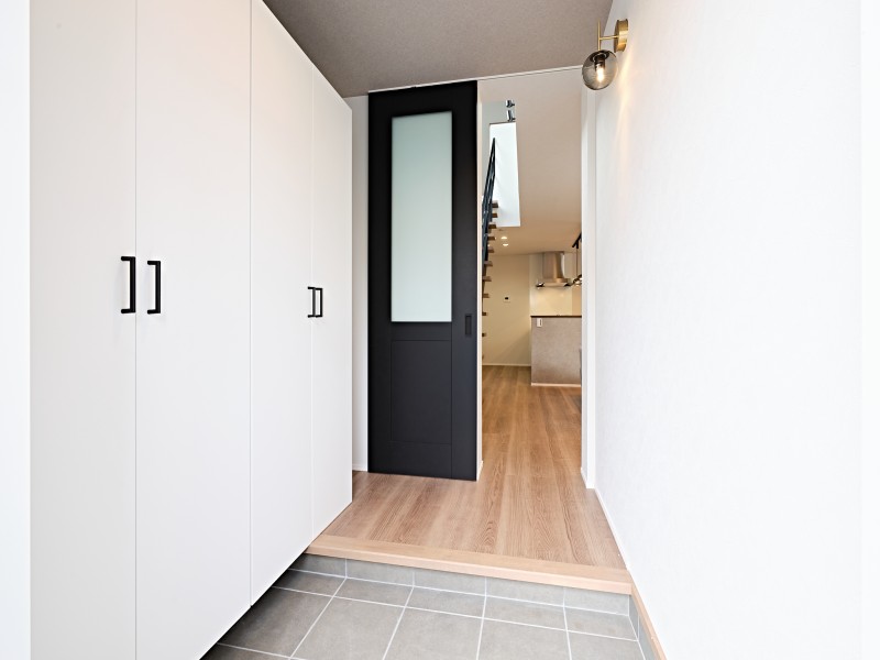 鍵を差し込まなくてもカードキーやボタンで開錠できる玄関です。