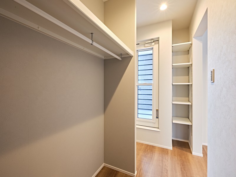 主寝室・バルコニー・WICが直結した、洗濯物を取り込んだ後すぐに収納できる便利な間取りです。