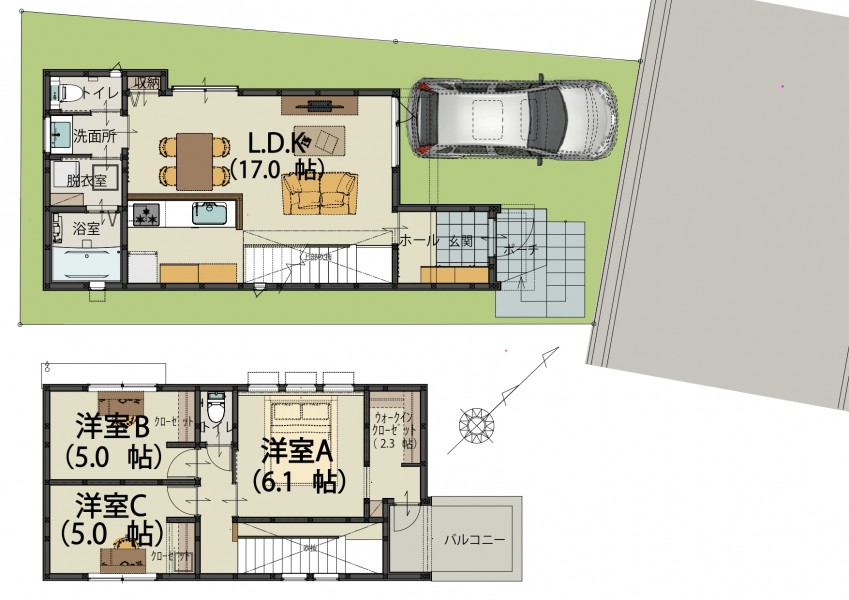 | 土地面積 | 95.6m²(28.91坪) | 建物面積 | 81.92m²(24.78坪) |