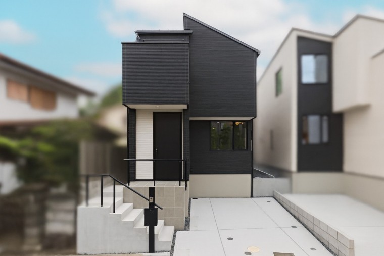 モノトーンでまとめた片流れ屋根がポイントの外観!