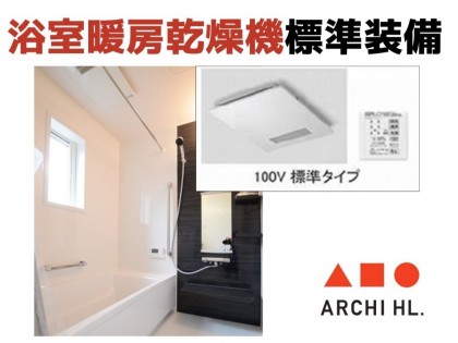 食洗器だけでなく、浴室暖房乾燥機も標準装備。 梅雨時や、冬の寒い時期などにも大活躍!