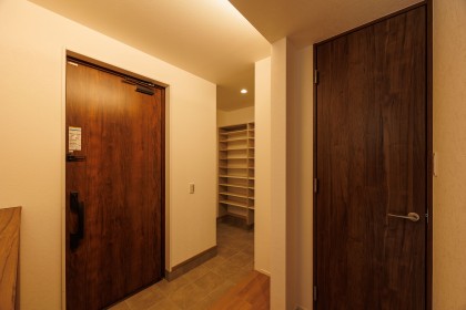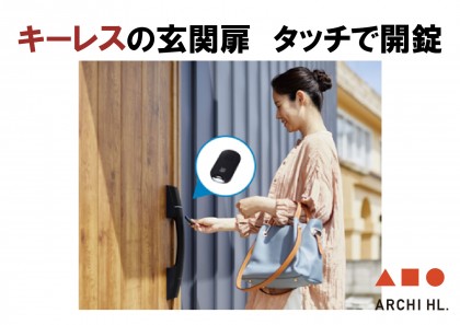 鍵を差し込まなくてもカードキーやボタンで開錠できる玄関です。