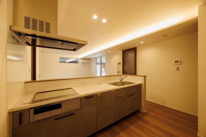 キッチンの正面を腰壁にすることで、LDKが広く感じられる設計になっています。