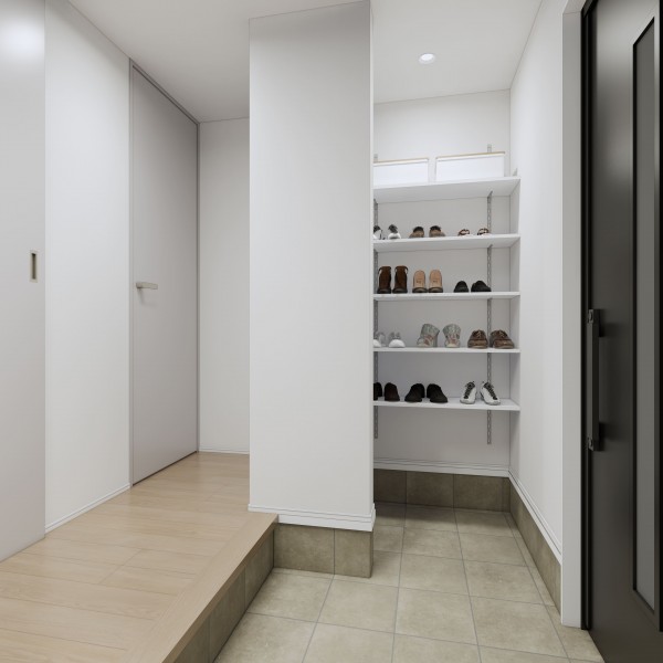 ベビーカーや趣味の道具も、そのままスッと入る便利な土間収納。※パースはイメージです