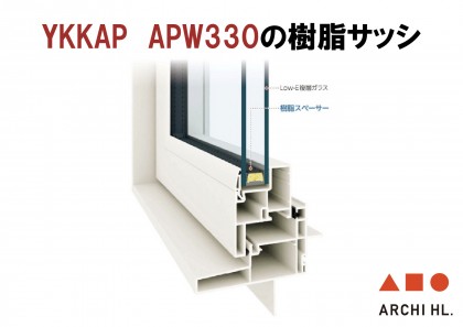 YKKAPのAPW330樹脂サッシを使用 樹脂と複層ガラスによりハイレベルの断熱性を実現しています。