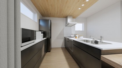 キッチンをぐるっと囲めば、毎日の夕食作りが家族みんなのイベントに変わります。※パースはイメージです